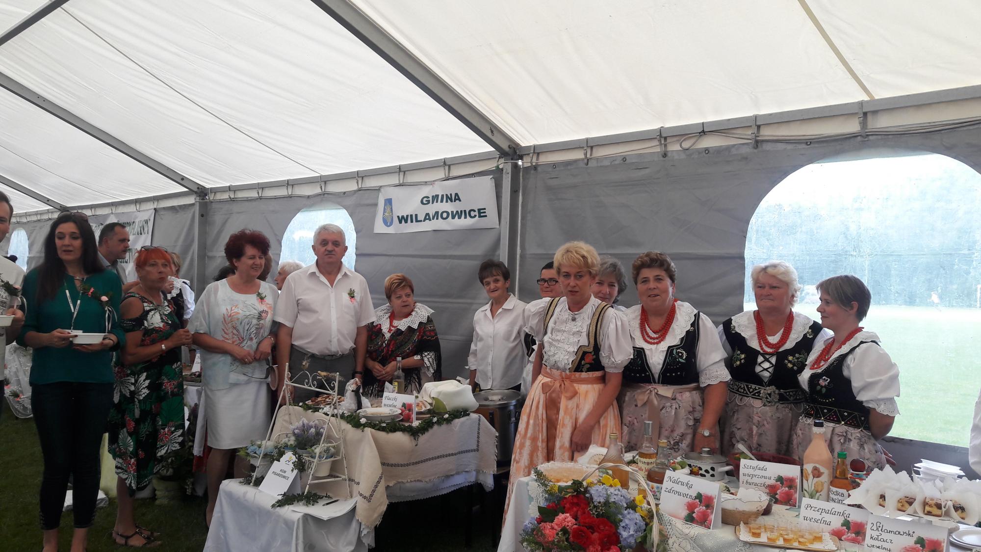 Z Gminy Wilamowice członkinie Kół Gospodyń Wiejskich przywiozły wspaniałe gorące dania obiadowe, zupy, produkty, ciasta, ciasteczka oraz wspaniałe zdrowe nalewki. Koleżanki KGW z Hecznarowic częstowały kiszką z młodą kapustą oraz nalewką żurawinową, KGW „Strażniczki Tradycji” z Pisarzowic częstowały flaczkami weselnymi, ciastami oraz nalewką „Mniszkulka”, panie ze Stowarzyszenia Kobiet Dankowic serwowały pyszny bigos ze sznyclem, pasztet ze świeżego boczku i oczywiście nalewkę. Na stole u koleżanek ze Stowarzyszenia Przyjaciół Kaniówka degustować można było „Kołacze weselne” ozdobione pięknymi scenkami weselnymi i nalewkę, panie KGW z Zasola Bielańskiego częstowały gulaszem i przepalanką, Natomiast panie KGW ze Starej Wsi wystawiały i posilały obecnych sztufadą wieprzową z buraczkami i „Nalewką zdrowotną”, u koleżanek z KGW Wilamowice stoły uginały się od kołaczy weselnych wraz z ciasteczkami między innymi słynne ciasteczka „Ule” ,oczywiście nie zabrakło „Przepalanki weselnej”.