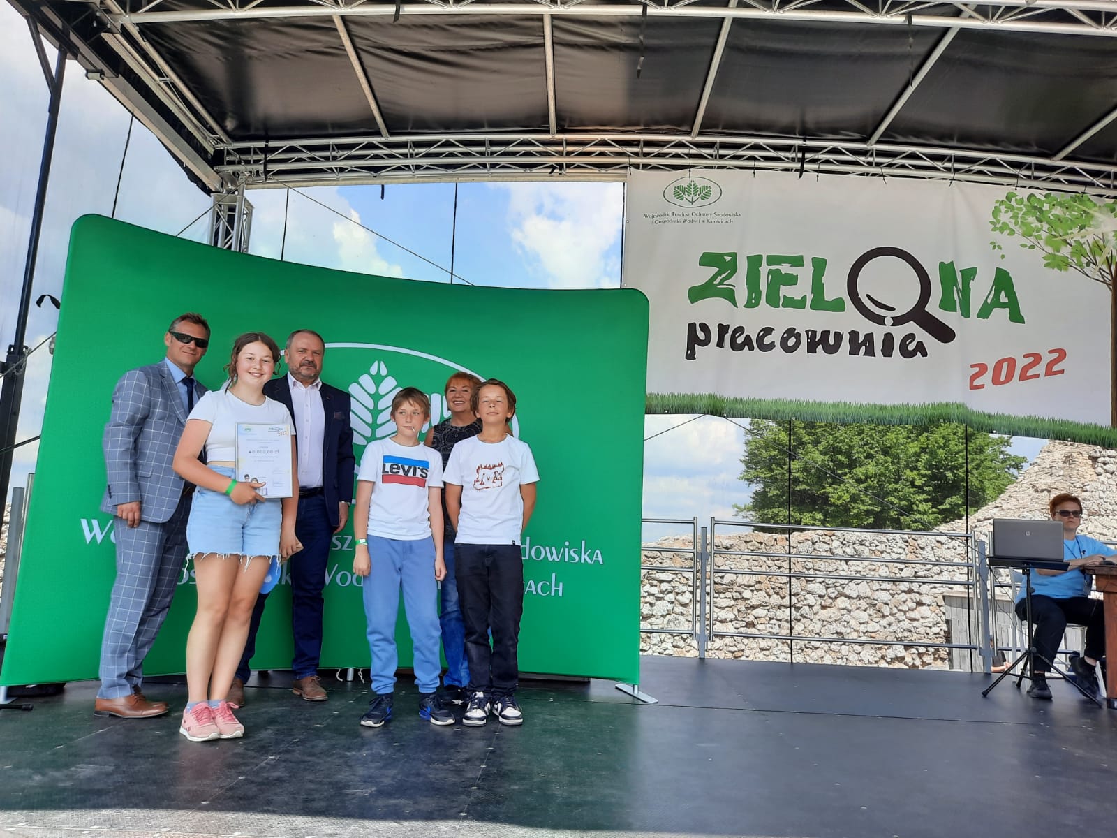 Finał wraz z uroczystym wręczeniem symbolicznych dyplomów potwierdzających dofinansowanie, odbył się 7 czerwca 2022r. na terenie przepięknego Zamku w Ogrodzieńcu. Przedstawiciele naszej gminy, z ramienia Burmistrza Wilamowic pana Mariana Treli - sekretarz pan Andrzej Kołtun, kierownik Zakładu Obsługi Szkół i Przedszkoli pani Bożena Sobocińska i dyrektor szkoły Lidia Dziubek odebrali z rąk prezesa Zarządu WFOŚiGW w Katowicach okolicznościowy dyplom. Wśród nagrodzonych szkół znalazła się Szkoła Podstawowa im. Jana Pawła II z Pisarzowic i projekt pracowni biologicznej „DNA komórka JA”. Uczestnikami wydarzenia byli uczniowie naszej szkoły, którzy mieli możliwość wzięcia udziału w ciekawych warsztatach ekologicznych, zaprezentowali swoje umiejętności w różnych zabawach i konkursach.