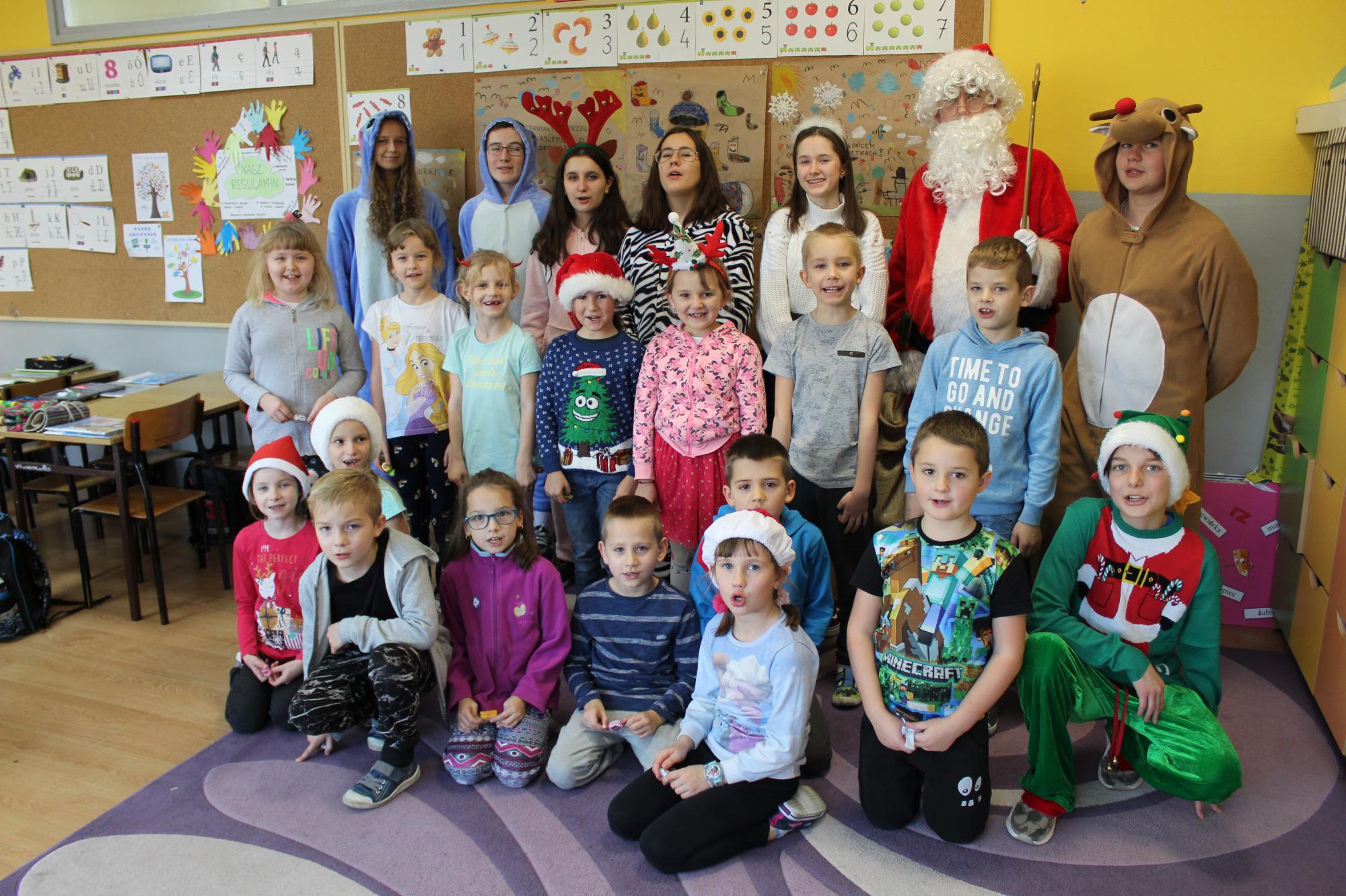 Wolontariusze odwiedzili swoich kolegów z klas I-VIII i pamiętali również o nauczycielach i pracownikach niepedagogicznych Szkoły. Nie zawiedli też dzieci z zerówki, które z wielką radością przywitały Mikołaja i jego pomocników. Młodsi uczniowie witali Mikołaja śpiewem, wierszykami o tematyce świątecznej, a nawet krótkimi układami tanecznymi.
