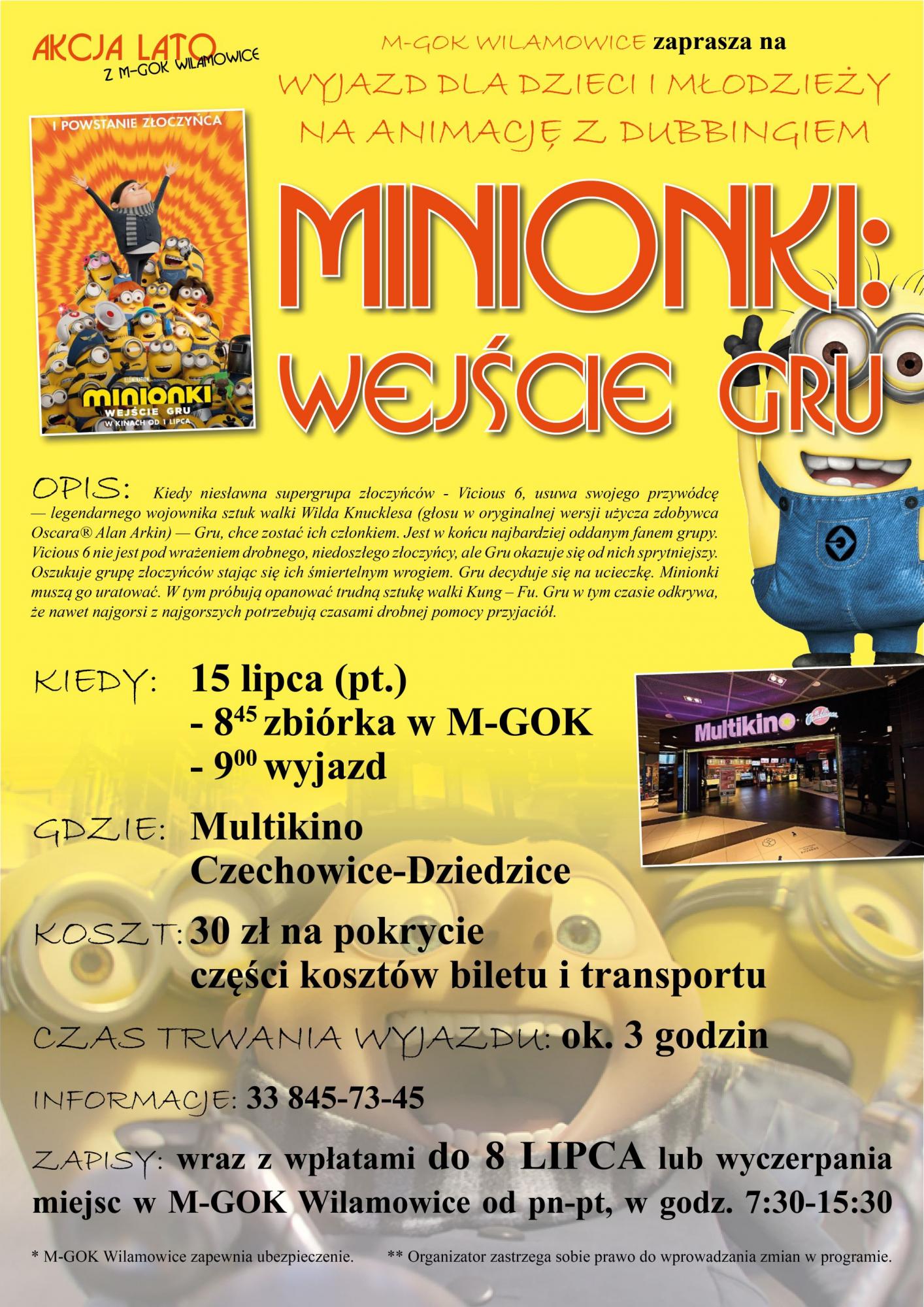 Wyjazd na animację "Minionki: Wejście Gru" - 15 lipca