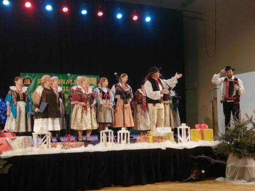 Wszyscy wykonawcy zaprezentowali piękne kolędy, pastorałki czy scenki jasełkowe, a opracowanie muzyczne, aranżacja i wykonanie poszczególnych utworów dostarczyły zebranym wielu wzruszeń. Zespoły zachwycały regionalnymi strojami ludowymi, entuzjazmem i autentycznością. Całej imprezie towarzyszyła miła, jeszcze świąteczna atmosfera. Uczestnicy-kolędnicy w podziękowaniu za piękne kolędowanie otrzymali pamiątkowe statuetki, dyplomy i regionalne upominki, a na pożegnanie jak to jest w tradycji Przeglądu Zespołów KGW naszego regionu, po każdej turze występów wszyscy uczestnicy wraz z gośćmi zaśpiewali kolędę „Bóg się rodzi”. Nie zabrakło również od włodarzy życzeń noworocznych dla wszystkich obecnych na sali widowiskowej.