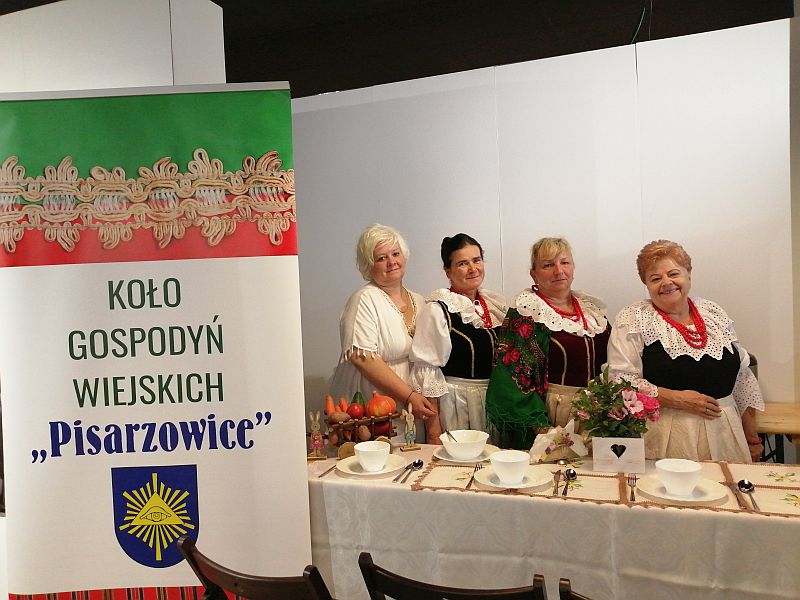 Członkinie Koła Gospodyń Wiejskich „Strażniczki Tradycji” z Pisarzowic po raz piąty wzięły udział w konkursie. Wystawiały w kategorii produkt żywieniowy regionalny- nalewkę  „Mniszkulka”, a w kategorii danie i potrawa regionalna, była to zupa ogórkowa z ziemniakami i danie jednogarnkowe mielone z kapustą i fasolą. Także nasze członkinie KGW miały możliwość zaprezentowania swoich firm i produkt. Pani Ilona Pudełko-Fest Park- Cukiernictwo wystawiała „Pisarzowicki kołocz weselny-dożynkowy”, a „Katering Beata” Beata Kostrzewa wystawiała „Pisarzowicki smalec z podgardla”. Wszystkie panie uczestniczące w konkursie z Pisarzowic wróciły z dyplomami i nagrodami.