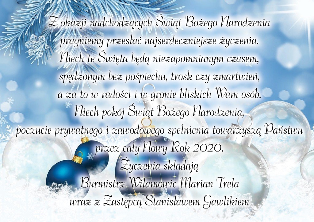 Na zbliżające się Święta Bożego Narodzenia wielu radosnych chwil,