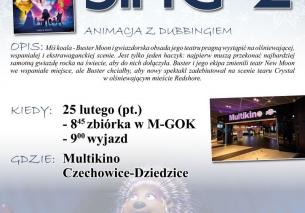 Zapisy na wyjazd do kina na animację "Sing 2" w ramach akcji "Ferie z M-GOK" śr., 2022-02-09 10:12 | Anna Klimczak BRAK WOLNYCH MIEJSC! Otwarta lista rezerwowa, decyduje kolejność zgłoszeń. Prosimy o wypełnienie i podpisanie zgody na wyjazd (do pobrania poniżej) oraz zabranie jej przez dziecko w dniu zajęć. Pliki: Zgoda na wyjazd.pdf