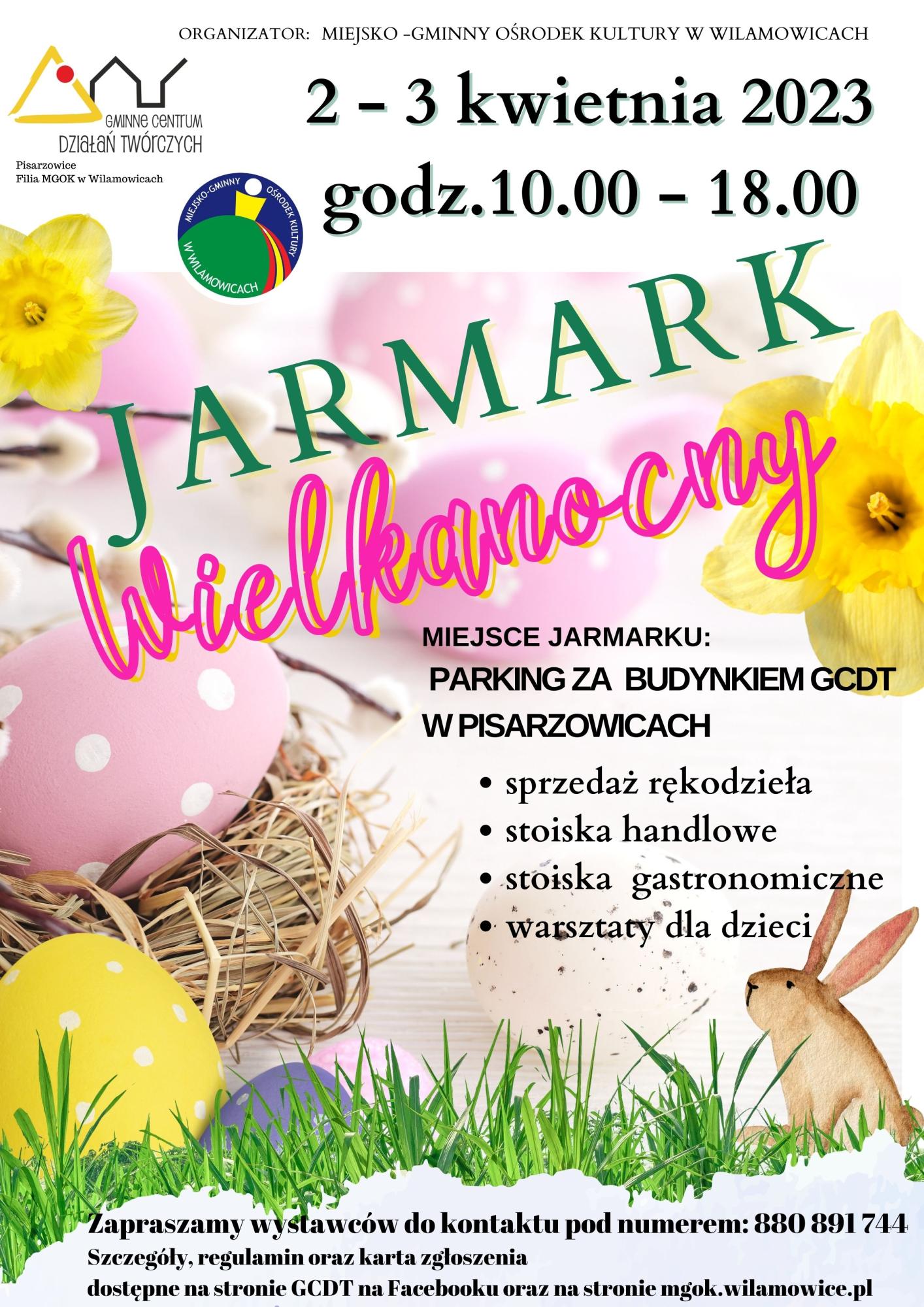 Zapraszamy mieszkańców całej gminy do udziału w tegorocznym Jarmarku Wielkanocnym! Regulamin i karta zgłoszeniowa dla wystawców śr., 2023-03-08 15:37 | Anna Klimczak Pliki: REGULAMIN JARMARK WIELKANOCNY.doc Karta Zgłoszeniowa Jarmark Wielkanocny.doc