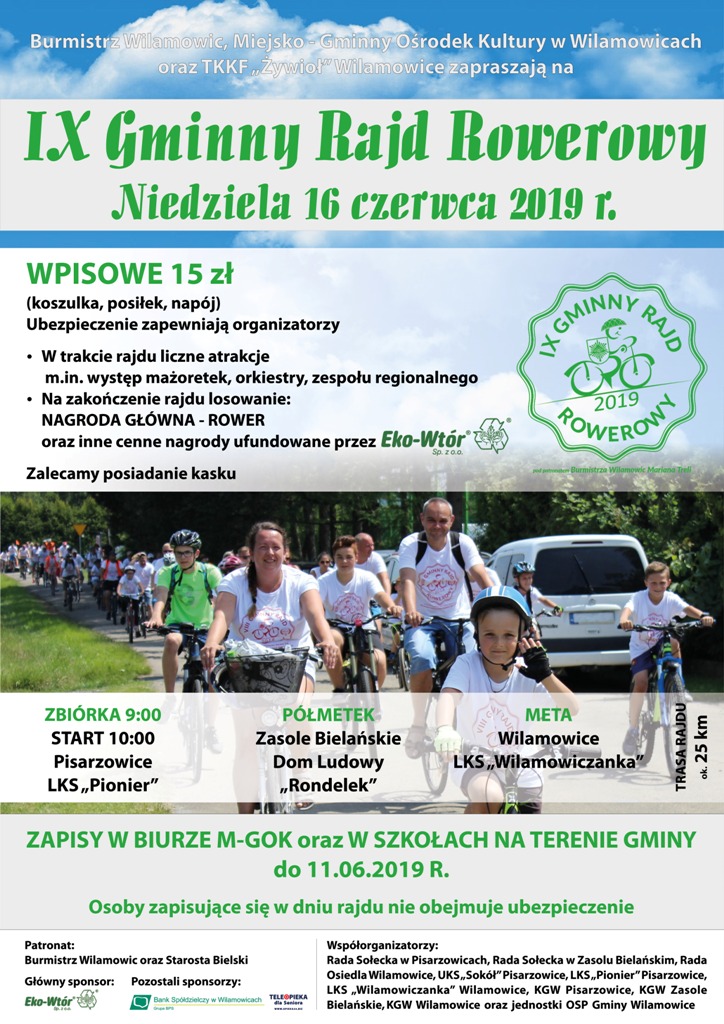 Zapraszamy na IX Gminny Rajd Rowerowy pod patronatem Burmistrza Wilamowic Mariana Treli pon., 2019-06-03 21:29 | Anna Klimczak