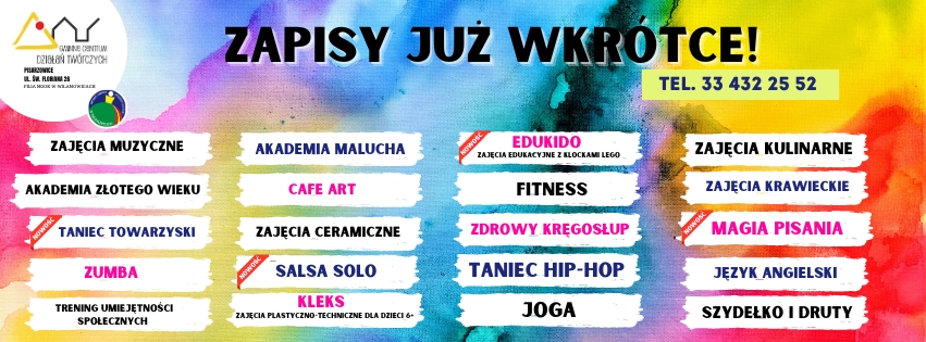 Zapraszamy na zajęcia organizowane w Gminnym Centrum Działań Twórczych w Pisarzowicach wt., 2023-09-19 17:30 | Damian Brożek