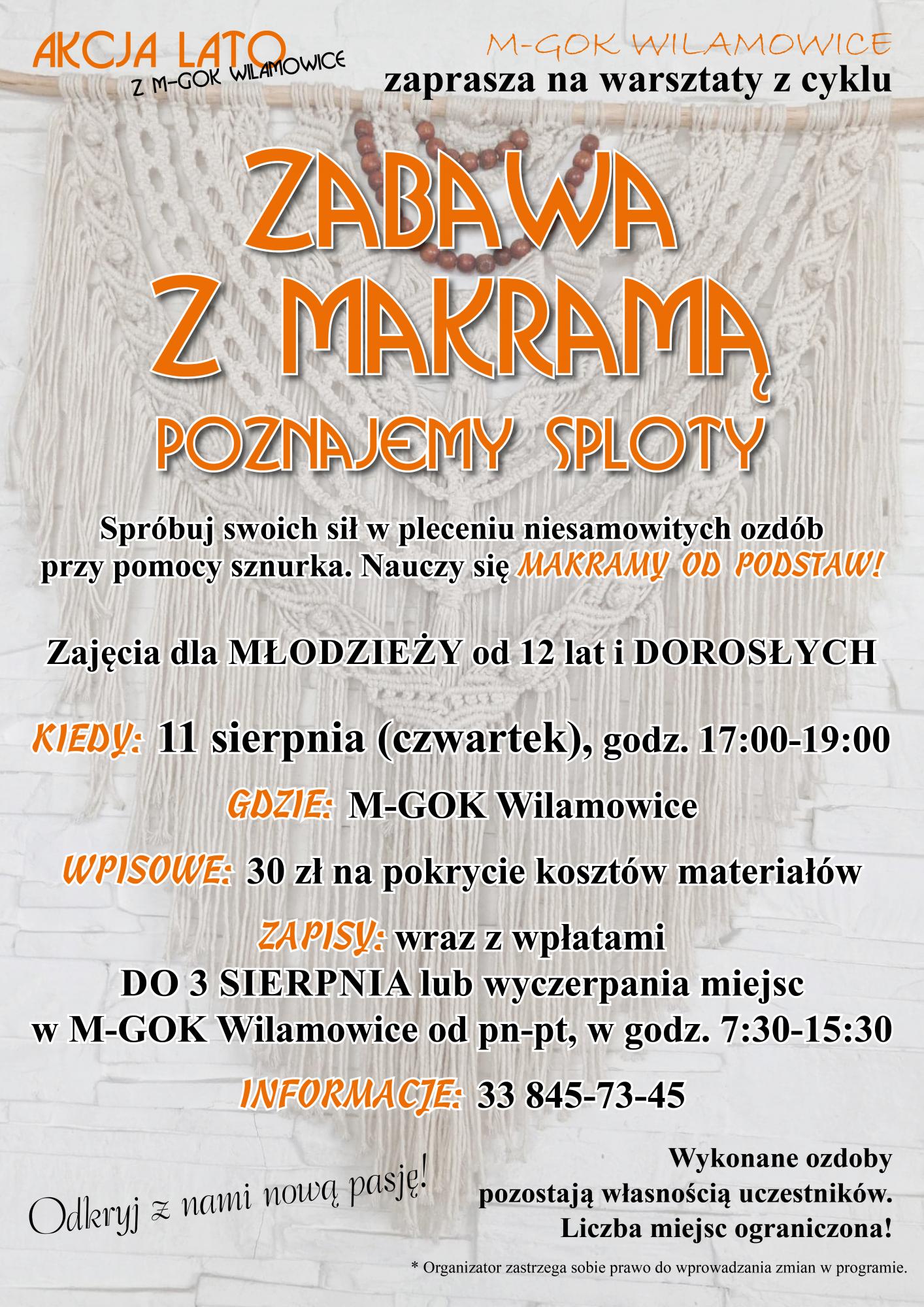 Zapraszamy na zajęcia z cyklu "Zabawa z makramą" - 11 sierpnia