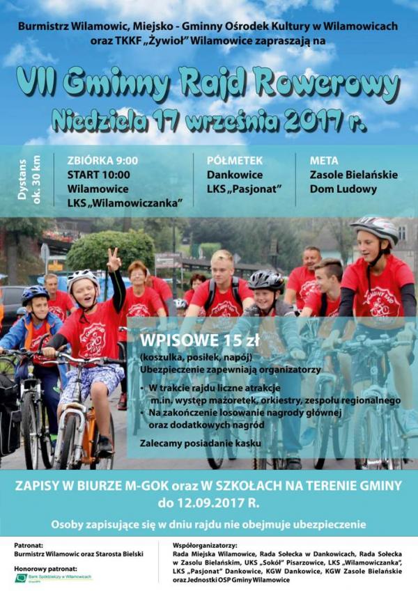 Beskidzkie Towarzystwo Cyklistów już po raz 43 organizuje Bielski Rodzinny Rajd Rowerowy pod patronatem Prezydenta Miasta Bielska - Białej. W tym roku trasa rajdu przebiega przez Gminę Wilamowice. Uczestnicy zawitają do urokliwej miejscowości jaką jest Stara Wieś, gdzie będzie miał miejsce półmetek rajdu. Informacje na niżej zamieszczonym plakacie.