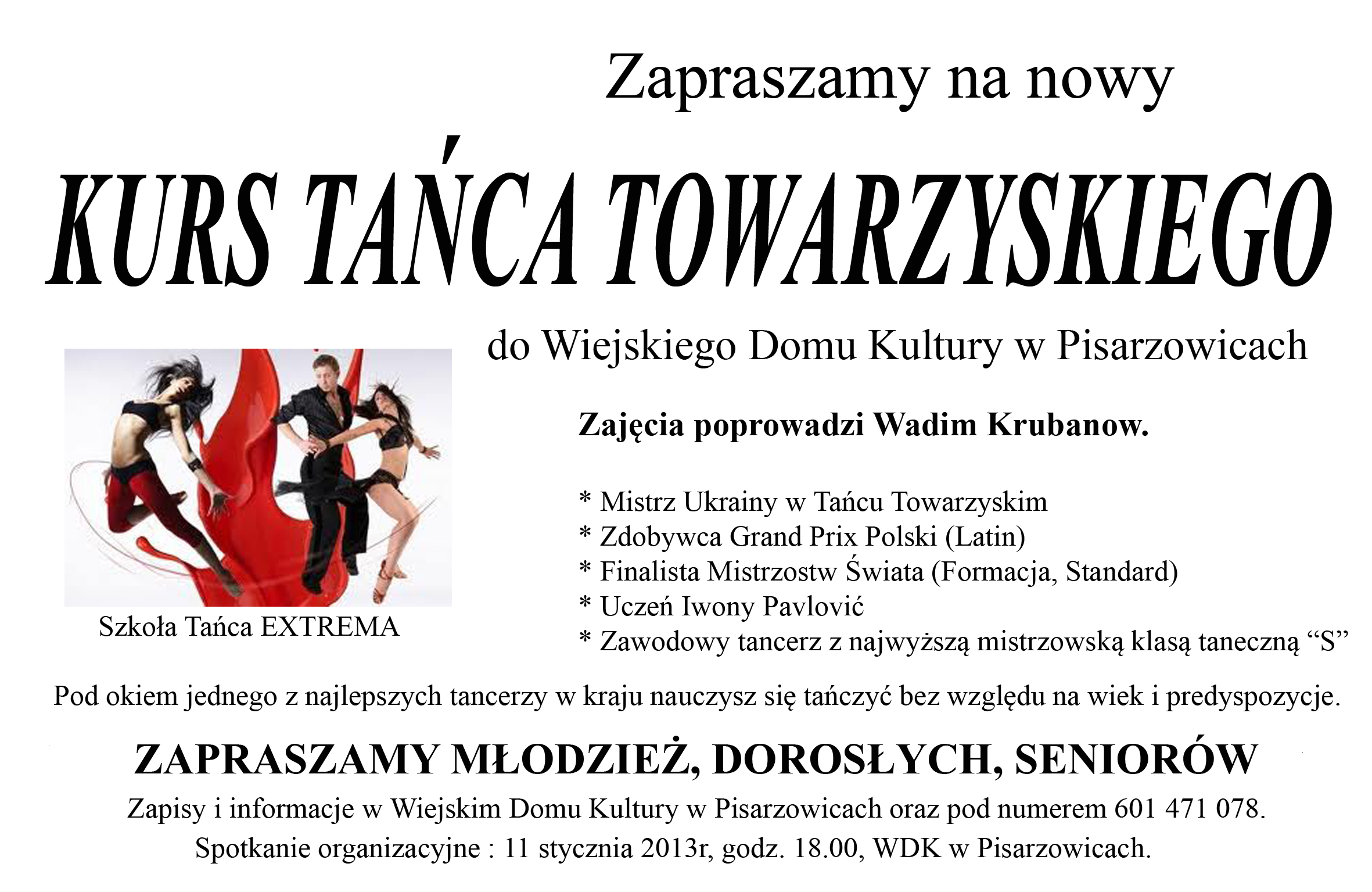 Zapisy na zajęcia przyjmujemy pod nr. tel. 33 84 57 345 do 31 października 2012 r.
